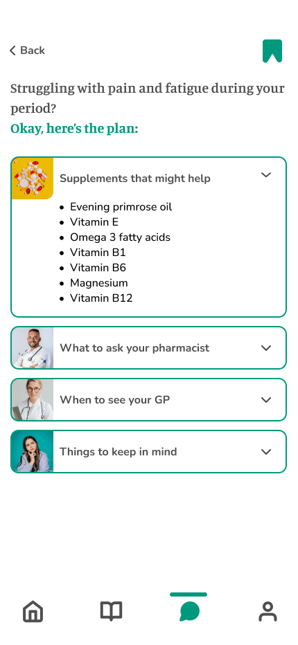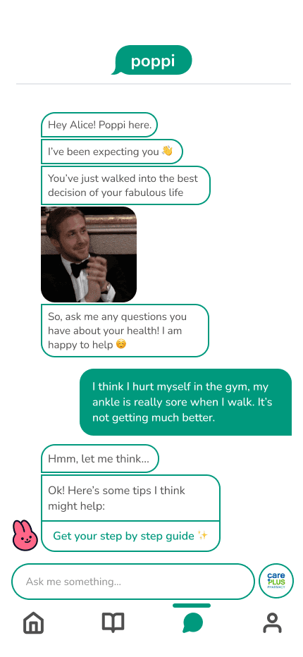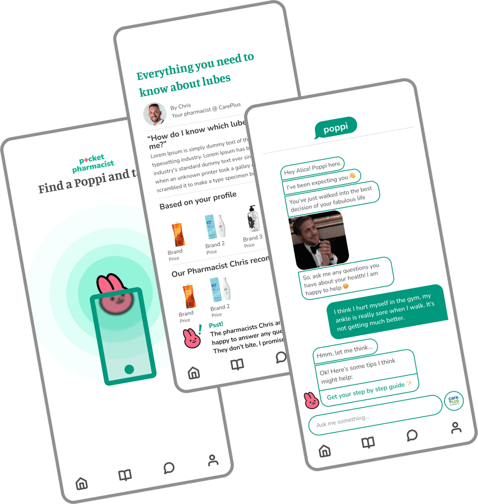 This provides users with a totally confidential and private space for asking any question they need to. Poppi will help them by providing some at-home remedies, tips on how their pharmacist can help, and when they should see a doctor or get a prescription.