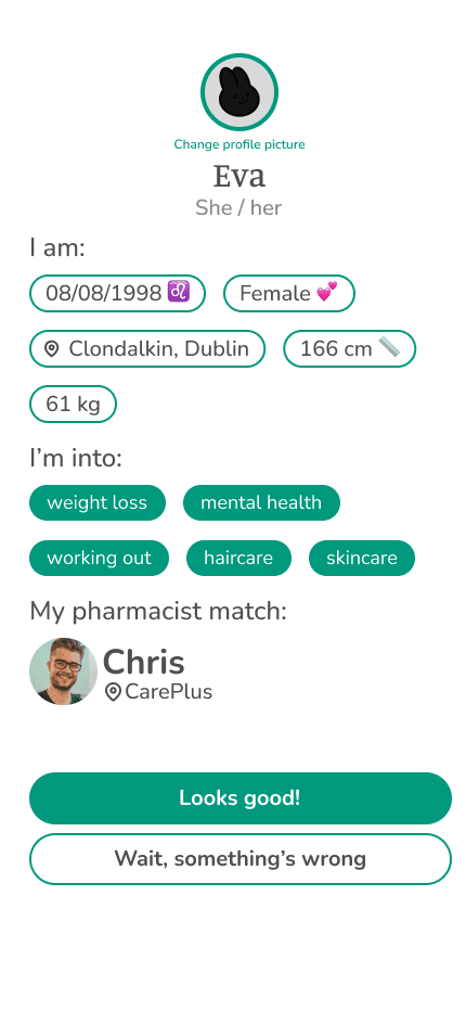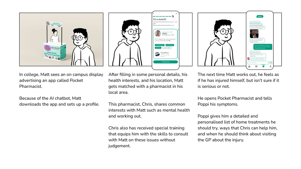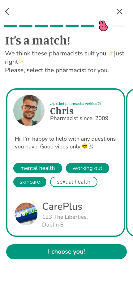 Pocket Pharmacist then provides the user with a match; a staff member in their chosen local pharmacist. This establishes a relationship between the business and the client by introducing a friendly face the user can recognise in-store.
