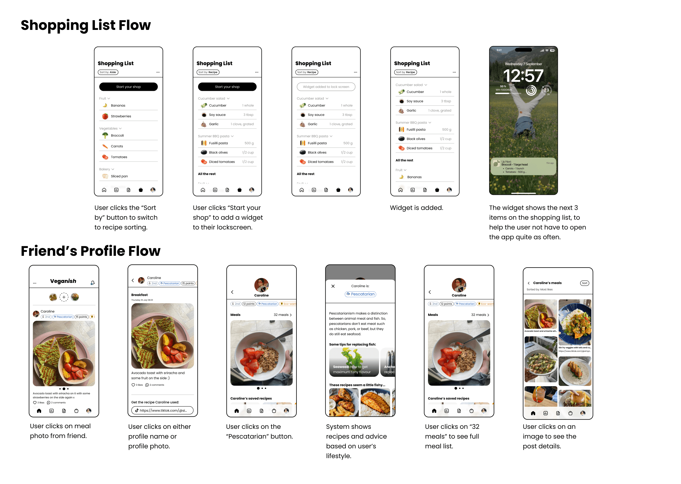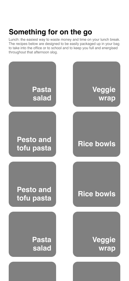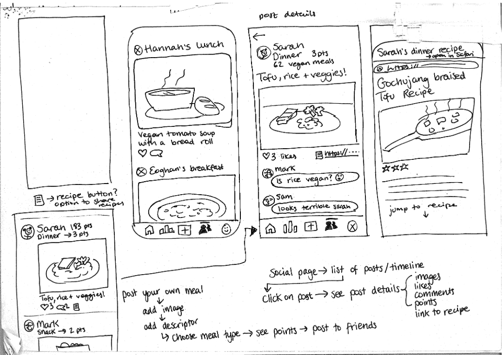 Each iteration of this prototype taught me new things, and inspired features that were to be included in the final product. I now knew that I had to create a tool in which the social aspects of eating were facilitated for, that included recipes and tips, as well as competition in the form of a points system to keep users motivated.