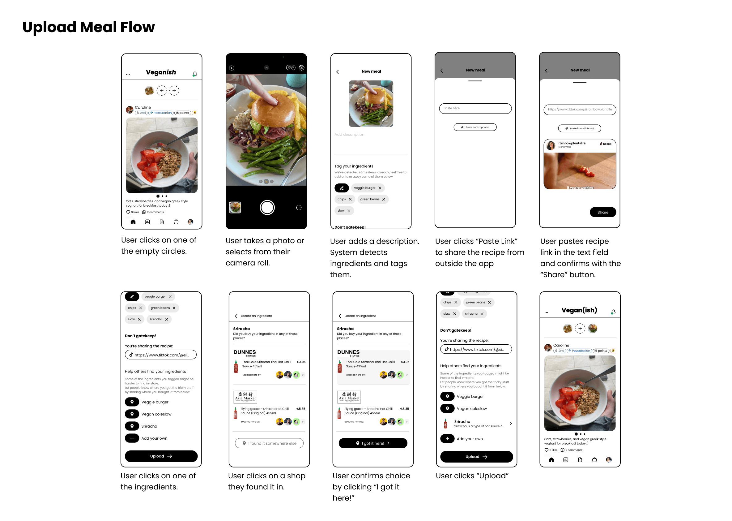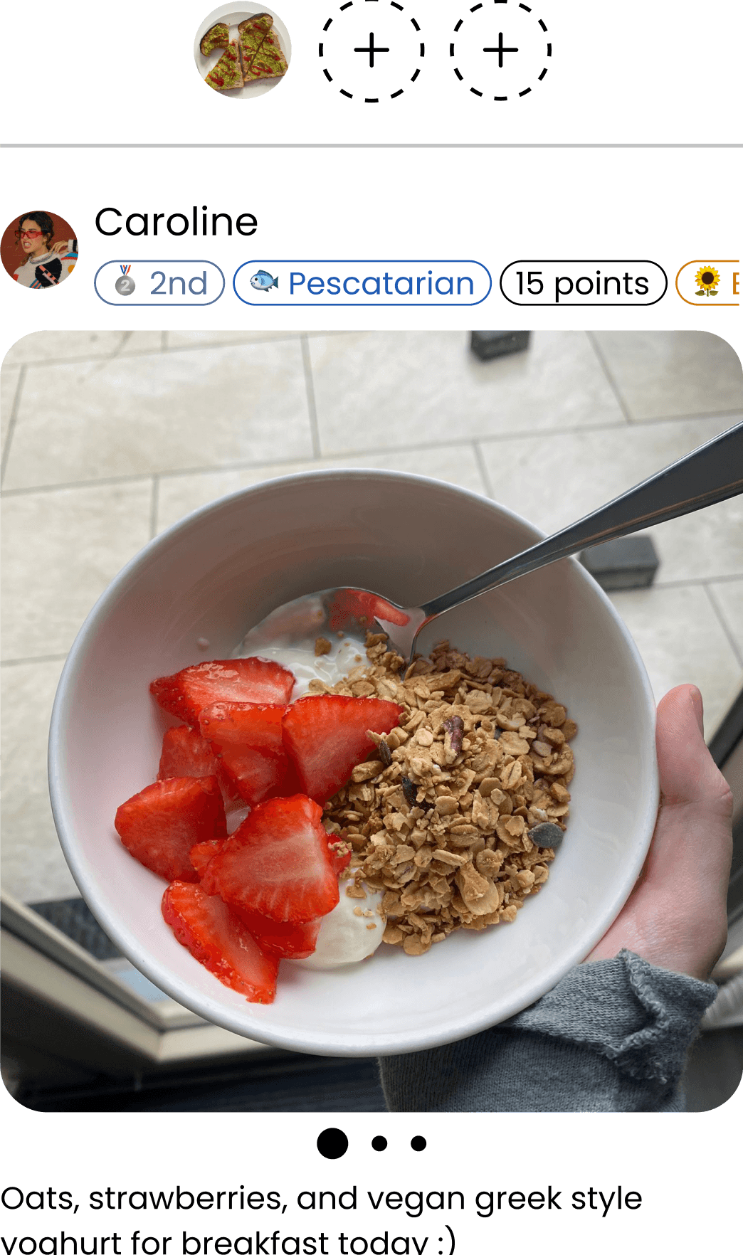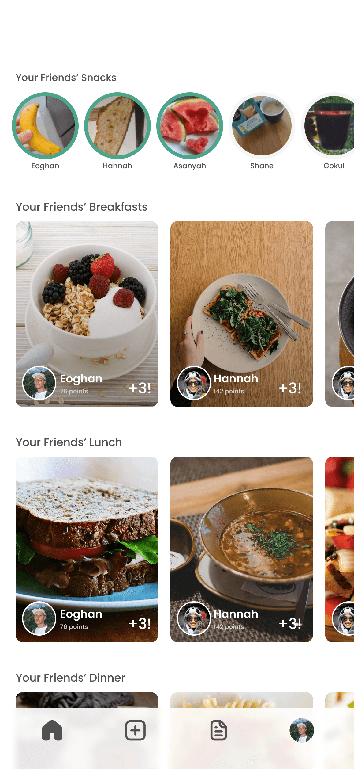 Here, users also post their own meal by clicking one of the three circles at the top.