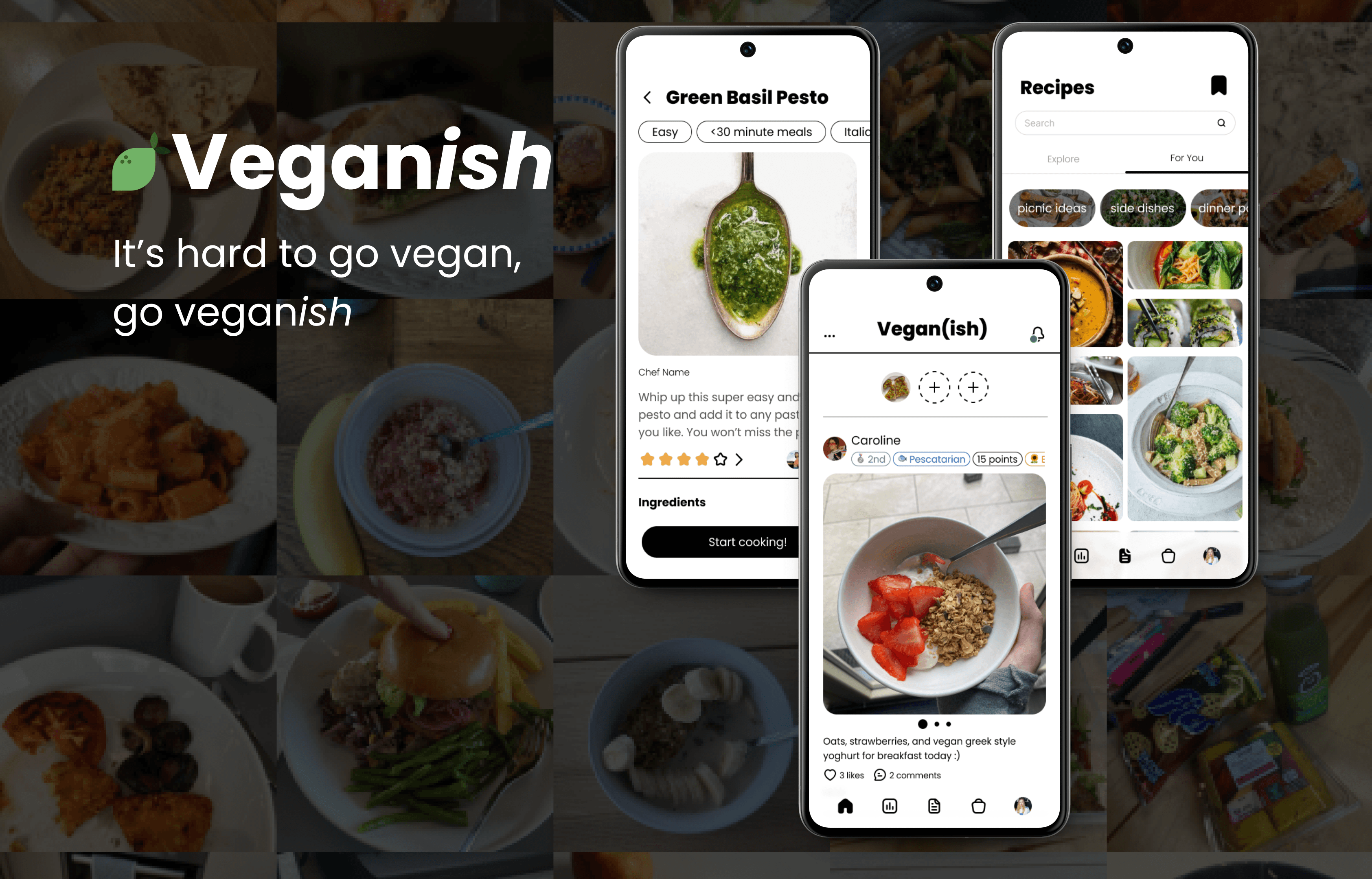 To help users plan meals and find new vegan recipes, Veganish has a bank of recipes written by chefs that users can browse, organise, and save for later.