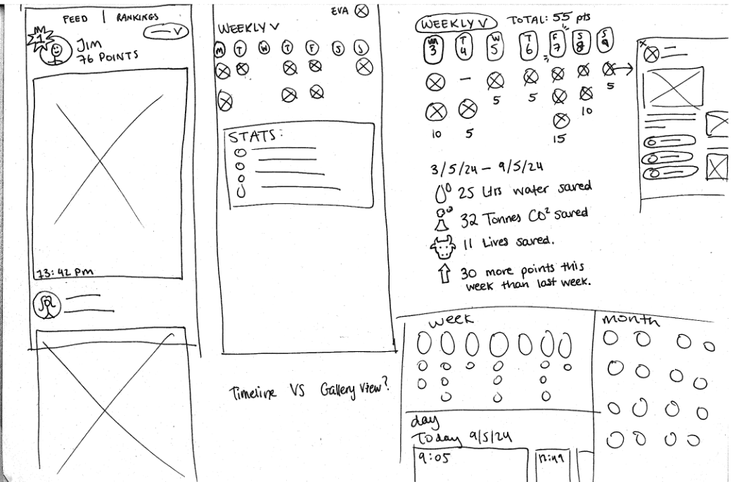 This feature existed at the mid-fi stage to help remind a user of the “good” they were doing every time they went vegan. However, this was scrapped in favour of a more simple user profile.