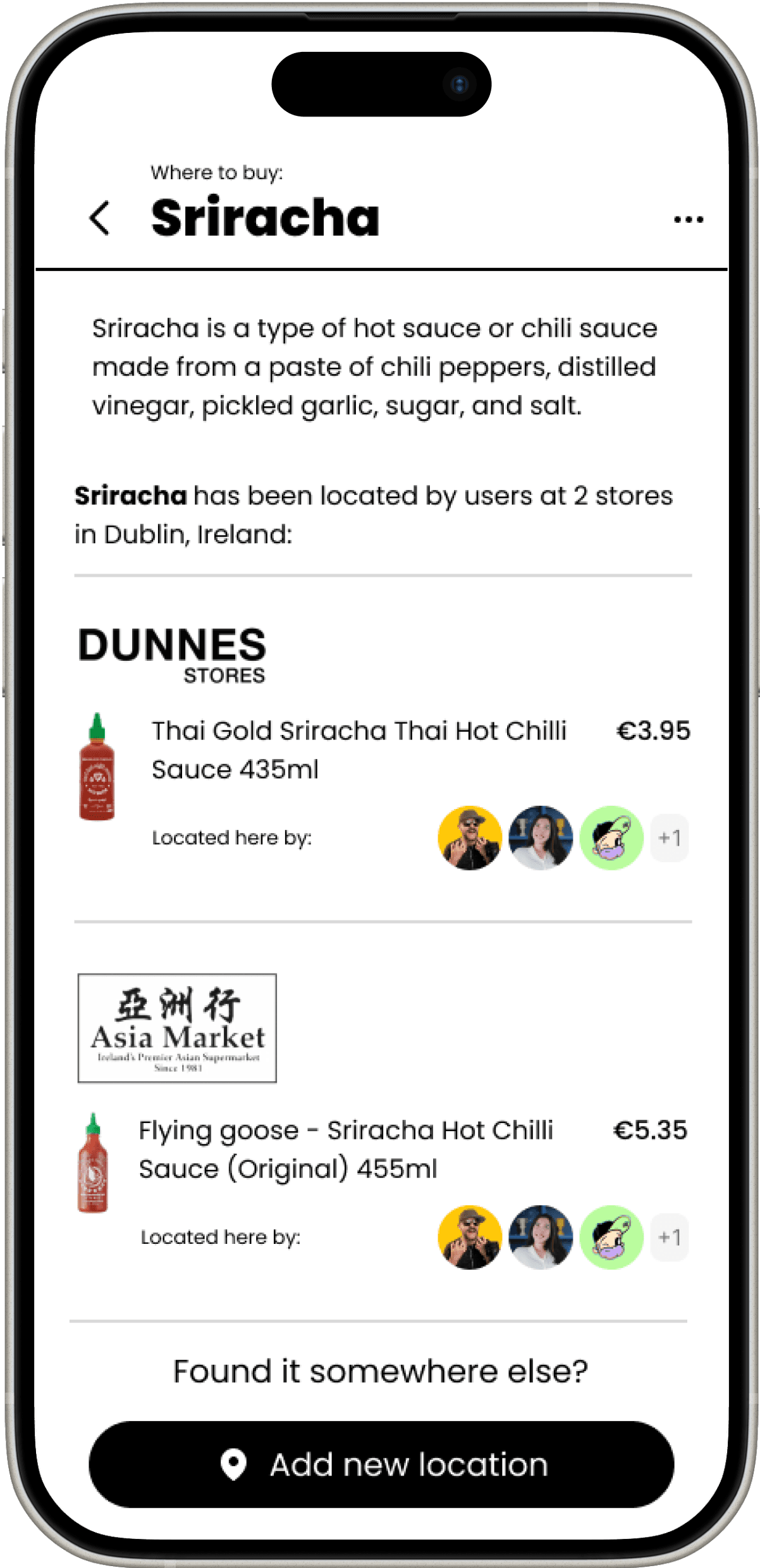 Other users can see these ingredients and the most popular stores they have been located at by other users.