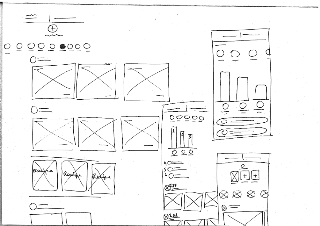 Every design story starts with research in the form of sketching wireframes for me. This helped me to conceptualise and iterate quickly. Some aspects of these early concepts made it into the final prototyped concept. Many other aspects were either changed or discarded based on user feedback.