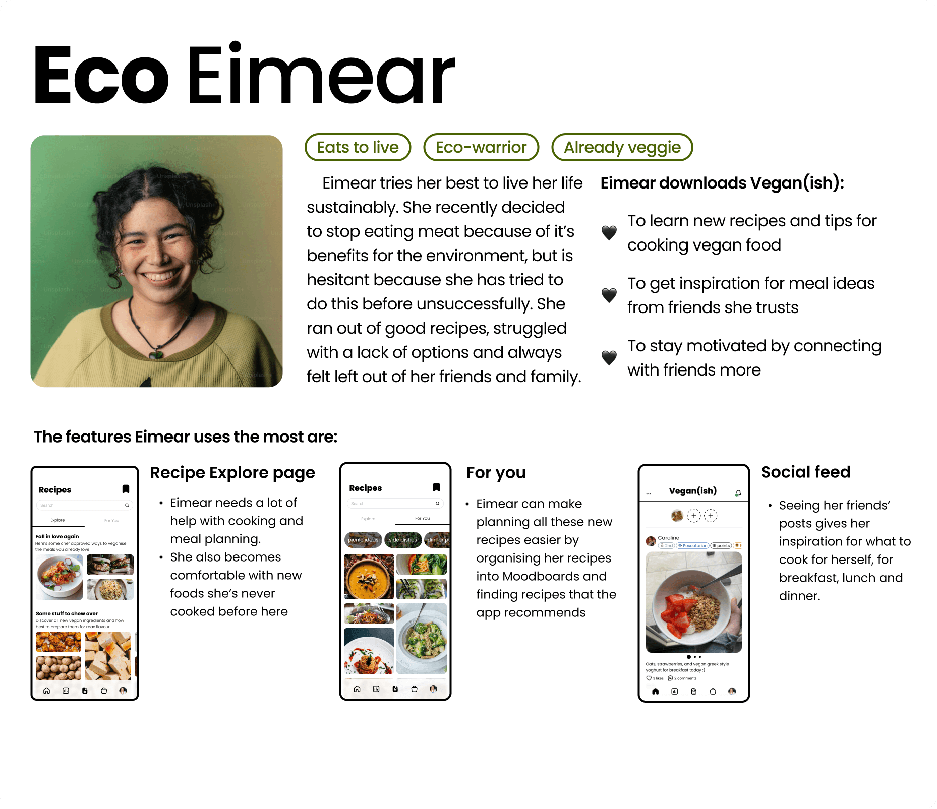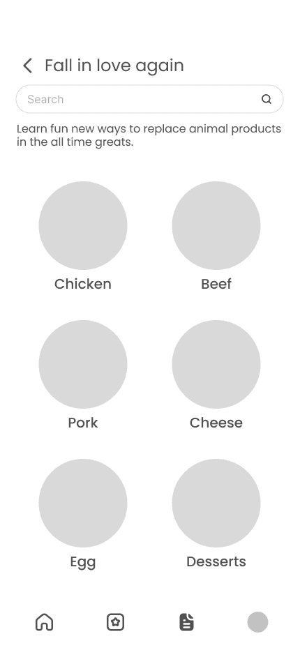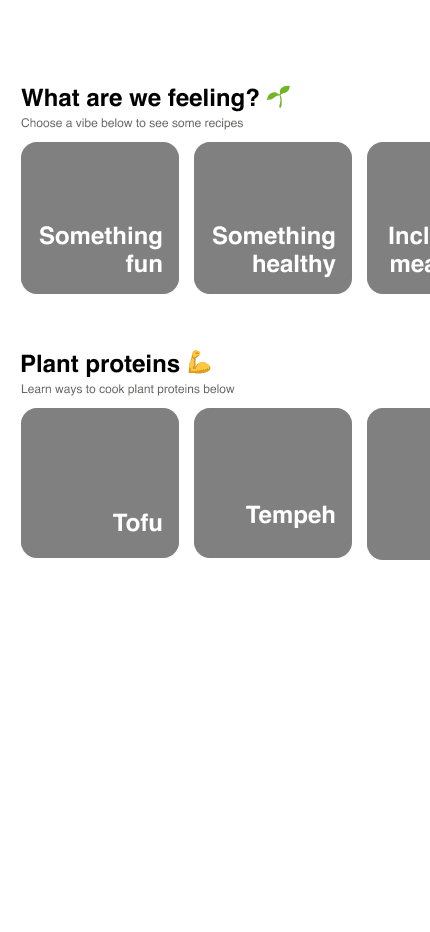 In Explore, users learn about novel vegan ingredients and cooking methods, to help them navigate new recipes they might not have been familiar with before going vegan.