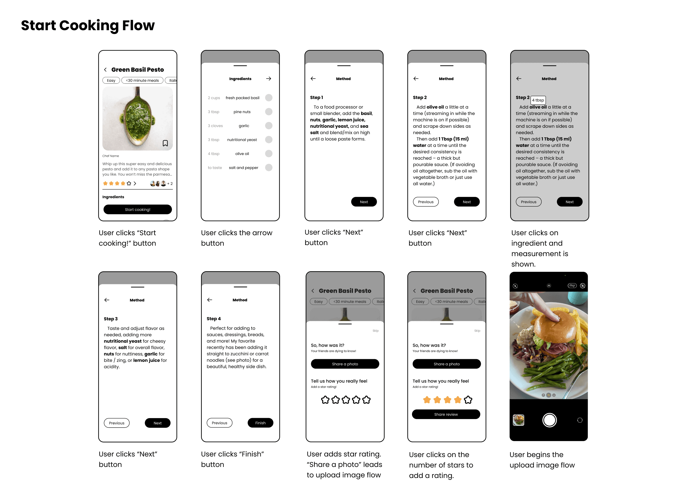 When users Start Cooking, an overlay opens that allows users to swap between ingredients and method with one swipe, and only one step at a time is shown.